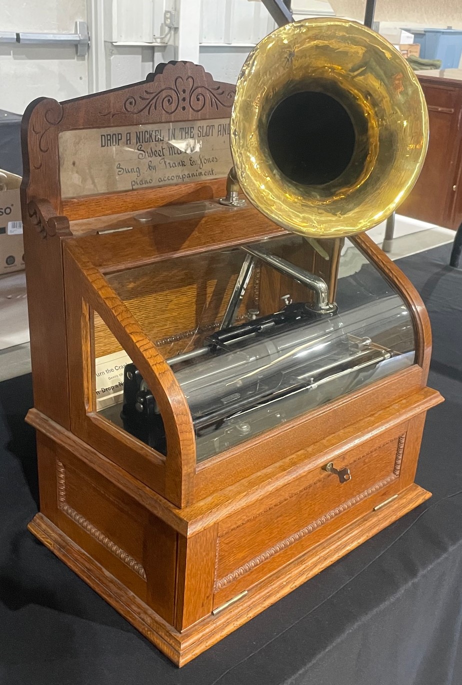 Der Edison Coin-Slot Phonograph Type H, Nr. H27619, ist ein weltweit herausragendes, seltenes Zeugnis der frühen Tonautomaten-Geschichte.