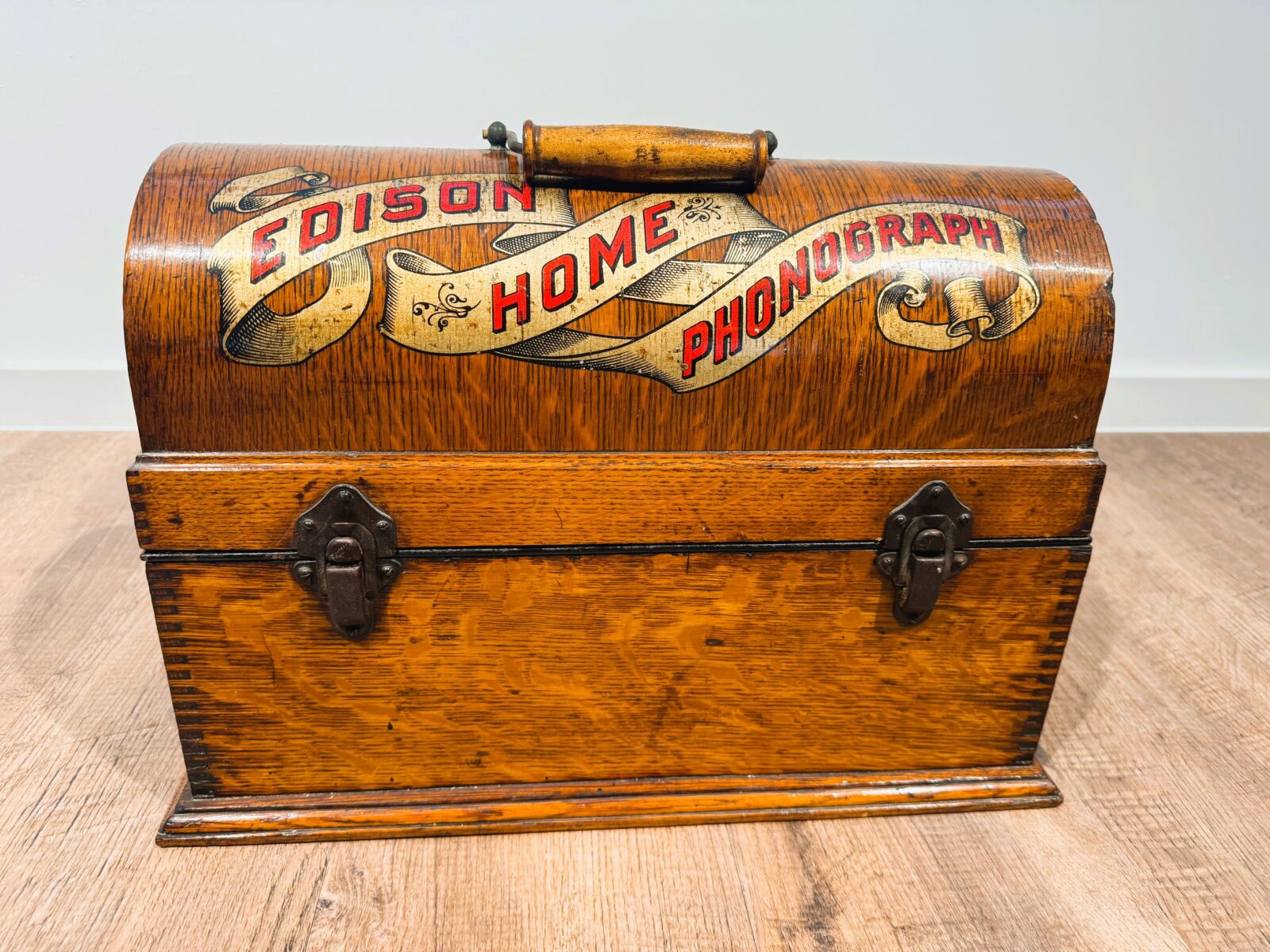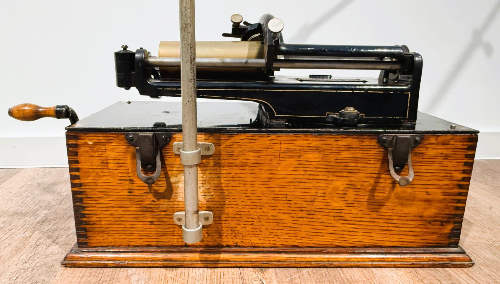 Dieses Gerät stellt ein frühes und charakteristisches Beispiel des Edison Home Phonographen dar und dokumentiert eine entscheidende Phase in der Entwicklung der häuslichen Tonwiedergabe.